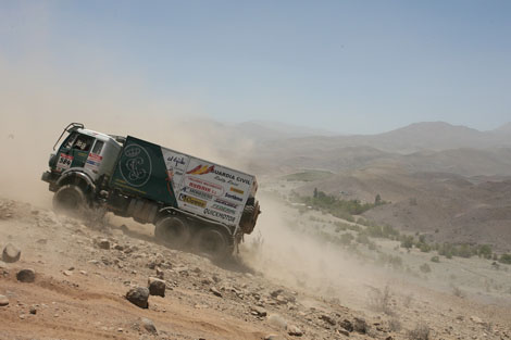 En el Mercedes Benz 6x6 el canario Isidro Viñoly y el almeriense Eduardo Campoy estaban realizando una etapa muy buena y rápida hasta que a falta de 100 kilómetros de la meta se les reventó un neumático, por lo que después de cambiarlo el ritmo de velocidad también se modificó debido a que colocaron la que era la última rueda que les quedaba. Finalmente pudieron concluir la etapa y el Dakar sin rueda de repuesto, pero llegando bien al final de la etapa y al campamento.