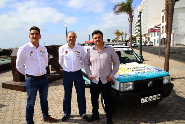 El equipo de Pedro Padrón y Luis Ferrer fue recibido por el concejal de Turismo del Ayuntamiento de Arrecife y por el responsable de Vías y Obras del Ayuntamiento de Teguise, Eugenio Robayna, que les desearon suerte en la aventura.