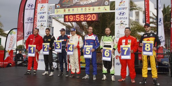 La primera jornada del Rallye de Tierra Isla de los Volcanes-Trofeo Naviera Armas ha estado marcada este viernes por una multitudinaria ceremonia de salida en Costa Teguise, donde además los pilotos prioritarios y favoritos a ganar la prueba eligieron por primera vez su posición de salida para los tramos cronometrados de este sábado, a tenor de los resultados del tramo de calificación disputado en "Famara-Teguise", donde el más rápido fue el equipo lanzaroteño de Yeray Lemes-Ariday Bonilla con el Mitsubishi Lancer Evo.