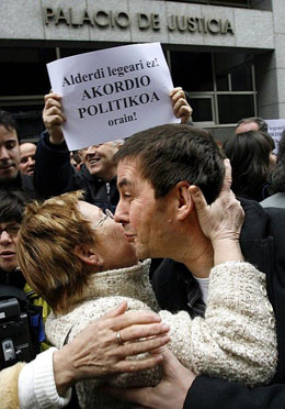 Una mujer besa a Otegi a las puertas del TSJPV.