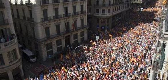 Cerca de un millón de personas han defendido este domingo la unidad de España manifestándose pacíficamente por las calles de Barcelona "Desde hace unos años el nacionalismo está causando estragos también en Cataluña", ha declarado el escritor Mario Vargas Llosa en su discurso al final de la manifestación.