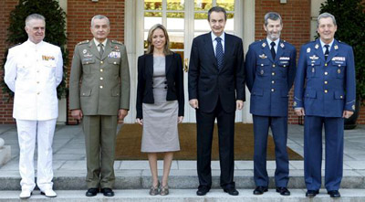 Zapatero y la ministra Chacón, junto a los responsables de los tres Ejércitos.
