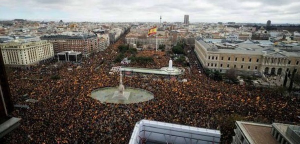 Responsables del PP y Ciudadanos calculan que a la concentración han asistido cerca de 200.000 personas, contando a la gente que estaba situada en las calles adyacente. La Delegación del Gobierno ha reducido la cifra en 45.000 asistentes.
