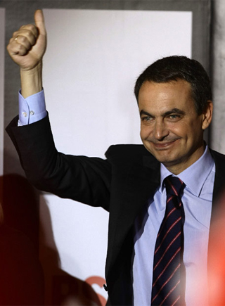 Con algo más del 80 por ciento escrutado, y cuando ya era evidente el triunfo del PSOE, el presidente del Gobierno en funciones, José Luis Rodríguez Zapatero, compareció ante para celebrar la victoria. El candidato socialista aseguró que se abre una nueva etapa para dejar atrás la crispación y ha prometido que gobernará para todos. También ha aseguró que el líder del PP, Mariano Rajoy, ya le había llamado para felicitarle.