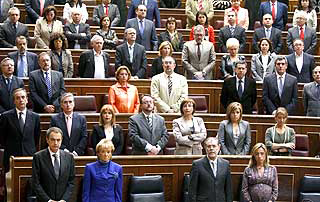La sesión de control comenzó con la lectura por parte del presidente, José Bono, de un comunicado de condena de todo el Congreso a la acción terrorista. "No existe ningún objetivo digno que pueda reclamarse a través de un asesinato", decía el texto. Tras su lectura se ha guardado un minuto de silencio.