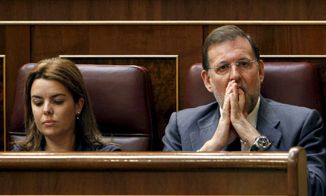Primera imagen de Mariano Rajoy junto Soraya Sáenz de Santamaría en el Congreso.