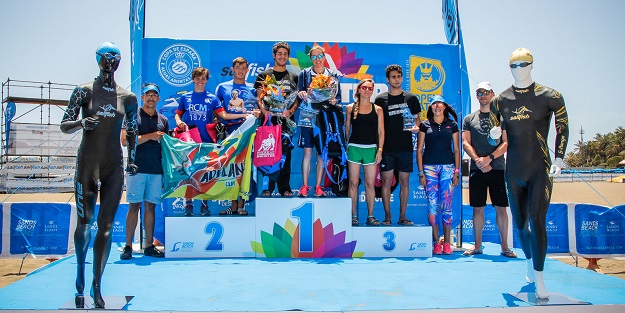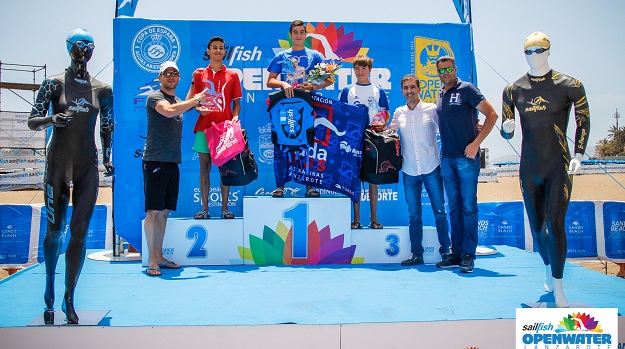 A las 10:15 hrs. comenzaba la primera de la competiciones. Los participantes de la categoría Delfín se metían en el agua y hacían sus 400 metros de recorrido. Fue Carla De Marco la primera en alcanzar la línea de meta, seguida por Nataska Ivancikova y Naita Jaen. En chicos fue Ivancik Dominik el que se alzó con la victoria, dejando en la segunda y tercera posición a Matías Padrón e Israel Calero. Turno de la categoría Tiburón, éstos tenían que hacer un circuito de 800 metros. El podium femenino de esta categoría estuvo formado por: Marías Barrios, primera; Jimena Martínez, segunda; y Ainara López, tercera. Por su parte el podium masculino lo formaron: Iker Fernández, primero; Juan José de Armas, segundo; y Nicolás Manzatto, tercero.