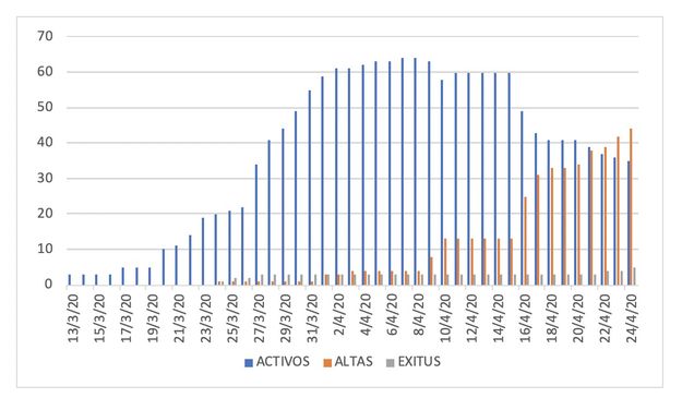 En cuanto a los ingresos hospitalarios, sólo 7 permanecen en el Doctor José Molina Orosa, 3 de ellos en planta y 4 en la Unidad de Medicina Intensiva.