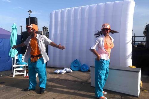 El domingo, 31 de julio, a las 11.00 horas dieron comienzo las actuaciones infantiles, con un taller de creación de fondo marino, también con material reciclado, dando paso al espectáculo infantil “Payasos”, de la mano de la Compañía Clownbaret que retomaron el maquillaje e intercalaron números propios con algunos de los gags de circo de más de 70 años, adaptándolos al lenguaje de la compañía para ponerlos de rigurosa actualidad. Un espectáculo de payasos clásicos dinámico, alegre y divertido, ideal para público infantil y familiar que sedujo por su originalidad y energía. Los payasos fueron llevando de la mano al público en un carrusel del que formó parte el público, como integrantes de una atracción de feria.