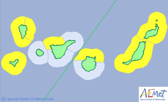 La Agencia Estatal de Meteorología (Aemet) activa para este viernes el aviso amarillo por fenómenos costeros adversos en las islas, afectando especialmente a las costas situadas al norte y al oeste del Archipiélago.
