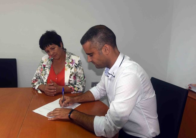 En el acto de entrega de las llaves del coche y firma previa de decreto de cesión han estado presentes, el alcalde, Alexis Tejera, en representación del Ayuntamiento de San Bartolomé y en representación de Adislan, en la firma, Guadalupe Villalba, tesorera y miembro de la junta directiva, Mónica Hernández, directora de centros e Inma Ortega jefa de administración, han aprovechado la cita para abordar distintos temas, y de los servicios que presta la Asociación, como son el Centro Asistencial para personas con grandes necesidades de apoyo, hablando del Centro Residencial, el Centro de Desarrollo Infantil y Atención Temprana, así como las acciones que realizan en materia de empleo, servicio de ocio y de hogares funcionales.