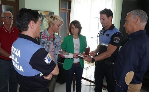 La alcaldesa de Arrecife, Eva de Anta, acompañada por la concejala de la Policía local, Victoria Sande y el comisario José Antonio Lasso, ha recibido en la mañana de este viernes al agente Rafael Ángel Méndez, condecorado con la medalla al mérito policial.