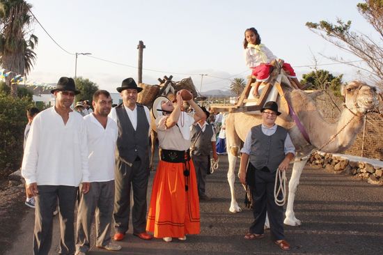 Una decena de grupos con cuerpos de música y baile, la carroza de mayores de Yaiza, siete carros de tracción animal bien decorados, diez camellos de ganaderos de Uga, dos caballos, burros y un pony, engalanaron la romería de Yaiza. Hubo familias que también se animaron a decorar los carritos de bebé y hasta se pudo ver una perrita ataviada con sombrero canario que viajaba cómodamente en un carrito decorado por su dueña.