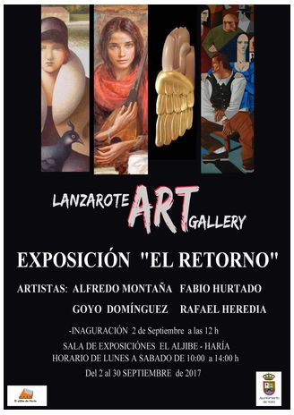 En esta interesante exposición, explica en nota de prensa el Ayuntamiento de Haría, donde se combina la pintura y la escultura, participan artistas de reconocida trayectoria internacional como Alfredo Montaña, Fabio Hurtado, Goyo Domínguez y Rafael Heredia.