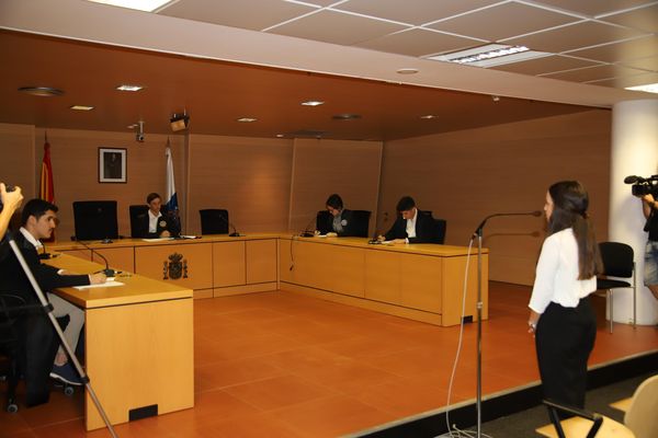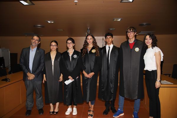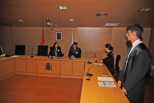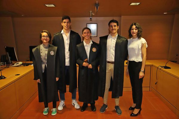 Alumnado de primero de bachillerato del IES Costa Teguise, del Colegio Arenas Internacional y del IES César Manrique ha participado en la mañana de este jueves, 6 de junio, de un juicio ficticio, celebrado en los Juzgados de Arrecife, donde los y las estudiantes han asumido los roles de las partes (demandado y demandante) y de los profesionales implicados en un verdadero proceso judicial (jueces, juezas, forenses, letrados, letradas y procuradores, entre otros).
