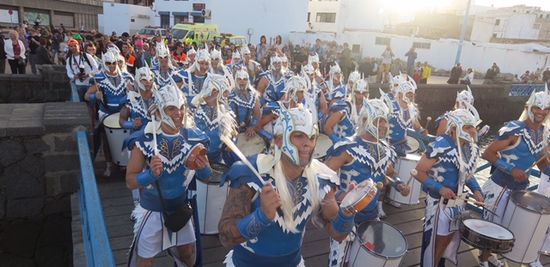 Escoltados desde el puente de Las Bolas por la ‘Batucada Villa Pipoll’ que hizo las delicias de vecinos y turistas de la zona, llegaron los pregoneros a un Charco de San Ginés a rebosar de gente con ganas de Carnaval. “El pregón que vamos a dar es sobre la gente que vive como nosotros el Carnaval”, dijo Toni Orosa, mientras su compañero se arreglaba su disfraza de mexicano.