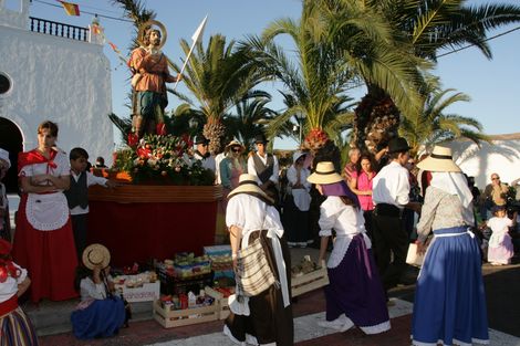 El sábado se vivió uno de los días grandes de la Fiestas: a las 17,00 horas arrancaba la Romería tradicional, con cientos de romeros ataviados con sus trajes típicos acompañados por camellos enjaezados con la silla tradicional, burritos tirando de carros y parrandas y agrupaciones folklóricas, que dedicaron sus mejores cantos al santo.