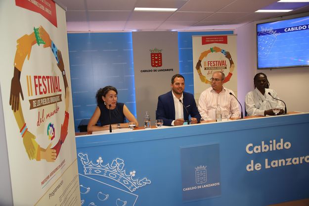 Talleres, gastronomía, baile y cultura es lo que se vivirá este sábado en el II Festival de los Pueblos Originarios del Mundo que se celebra de 12.00 a 22.00 horas en el Parque José Ramírez Cerdá de Arrecife. Esta mañana se presentó el acto en rueda de prensa en el Cabildo Insular de Lanzarote en la que estuvo presente el vicepresidente del Cabildo, Jacobo Medina, la consejera de Energía Ariagona González, el promotor del evento César Martínez y la portavoz de la Asociación de Guinea Ecuatorial María Isabel Wantter.