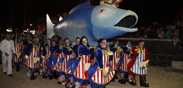 Viudas, viudos y mascaritas en el tradicional entierro que contó también con las tres carrozas ganadoras 'Coco', 'Miles del Futuro' y 'Monstruos University', partió desde el Ayuntamiento de Arrecife a las 18.00 horas hasta el Parque Marítimo de la capital, según ha informado posteriormente el Consistorio capitalino en nota de prensa.