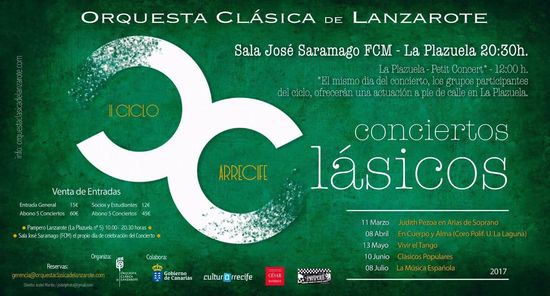 Las actividades, informa el Consistorio en nota de prensa, continuarán este sábado, 13 de mayo, con dos nuevos recitales del II Ciclo de Conciertos Clásicos Arrecife que, en esta ocasión, correrán a cargo de Tango para cinco y Tangatos.