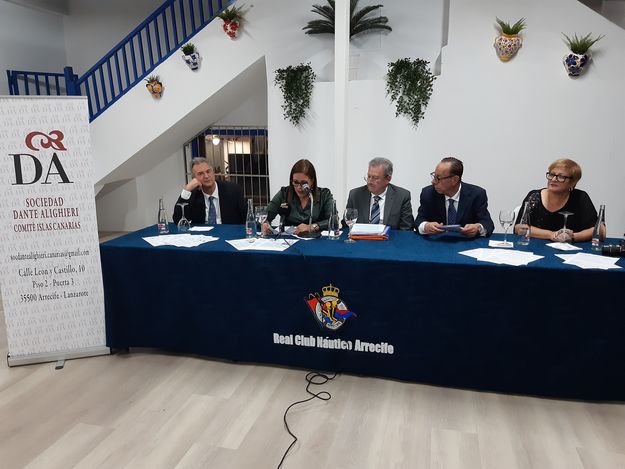 Durante su intervención en el Casino Club Náutico, la alcaldesa de Arrecife, destacó que “contar con la Sociedad Dante Alighieri en la capital de la única isla canaria que tiene por denominación el nombre originario de un navegante italiano, es un orgullo que debemos tener todos los arrecifeños y arrecifeñas”.