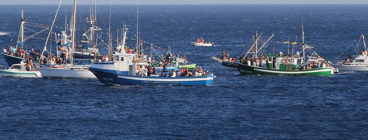 Las aguas de Puerto del Carmen, entre el barranco del Quíquere y Playa Grande, se cubrieron este sábado por la tarde de una gran marea de embarcaciones pesqueras y de recreo para acompañar a la imagen de la Virgen del Carmen en su embarque anual zarpando desde el puerto de La Tiñosa. Poco después de las 18.15 horas salía en procesión la venerada imagen de la Virgen desde su iglesia en el puerto de La Tiñosa escoltada por la parranda marinera de Los Buches y cientos de vecinos y turistas que se unieron con su asistencia a esta tradición en las Fiestas de Puerto del Carmen.