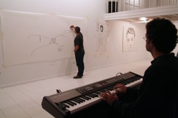 Muestra de esta vocación por ofrecer una actividad llena de movimiento y en constante cambio fue la propia inauguración, en la que Jorge Rojas se encargó de elaborar un dibujo en una pared de la Sala El Patio de El Almacén al son de la música que interpretaba el pianista Samuel Aguilar, que acompañó a Rojas en esta performance.