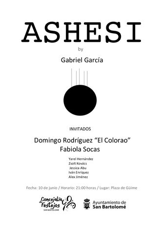 Gabriel García vuelve con Ashesi, una palabra africana que significa comenzar. En esta ocasión el concierto se celebrará dentro de los festejos de San Antonio de Padua en la localidad de Güime, el lunes día 10 de junio, a las 21.00 horas en la Plaza de Güime.