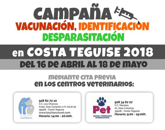 Durante el mes de marzo el área de Tenencia y Protección de Animales del Ayuntamiento de Teguise ha promovido una nueva campaña de vacunación, identificación y desparasitación de animales de compañía por los pueblos del municipio, que actualmente alcanza la cifra de 6.523 perros censados, de los cuales, 540 lo han hecho en los últimos 12 meses.