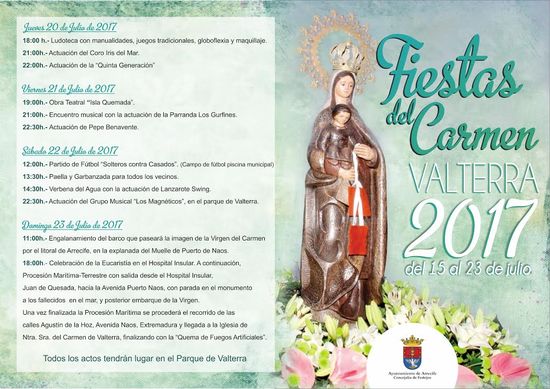 Valterra celebra una de las fiestas más tradicionales y concurridas de la capital de la Isla, las Fiestas del Carmen, este año desde el 15 al 23 de este mes con actos tradicionales y novedades para toda la familia.