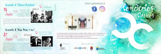 En junio, concretamente el día 16 a las 12.00 horas, llega ‘Clásicos Populares’ con el ‘Quinteto OCL’ en La Plazuela y el 30 se clausura el Ciclo de Conciertos Clásicos con ‘Dúo Piano y Voz’ a las 20.30 horas en la Casa de la Cultura Agustín de la Hoz.
