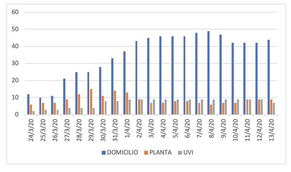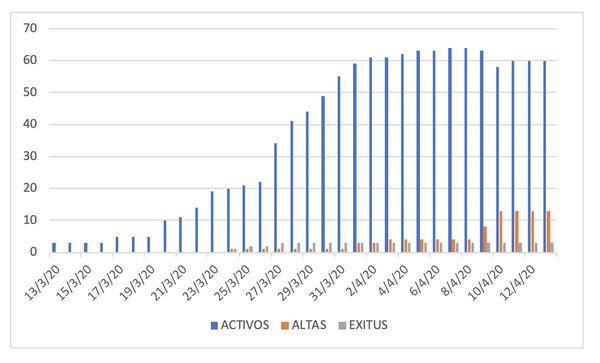 Este lunes salían de la UMI la primera paciente que ingresó en cuidados intensivos con COVID-19 el día 17 de marzo y otra paciente que llevaba ingresada 22 días también era trasladada a planta. Este martes aumenta de 42 a 44 el número de personas en seguimiento domiciliario.