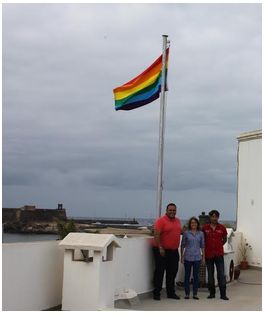 La alcaldesa de Arrecife, Eva de Anta junto a ediles del Partido Socialista, Coalición Canaria, Podemos y Ciudadanos, posaron bajo la enseña multicolor, como muestra de respeto hacia la lucha y reivindicaciones de las personas gays, lesbianas, transexuales y bisexuales.