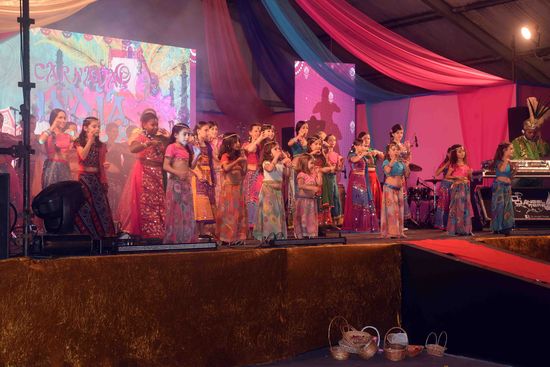 La temática del Carnaval municipal es La India, y con un decorado de peli de Bollywood con mucho brillo, colores intensos, 3 pantallas y mucho led, comenzó la noche, con la actuación de la Escuela de danza de Samira Rif, haciéndolo con un ritual mágico de velas, Almudena Hernández estuvo acompañada por una representación de Los Cumbacheros que pusieron ritmo para acompañar a su fantástica voz y también por las bailarinas de la Escuela de Danza de Samira Rif.