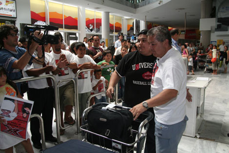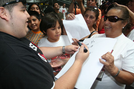 Decenas de personas acudieron este jueves al aeropuerto de Guacimeta para recibir al que ellos consideran el verdadero campeón de la primera edición del concurso Factor X de la cadena televisiva Cuatro, Walter Renato.
