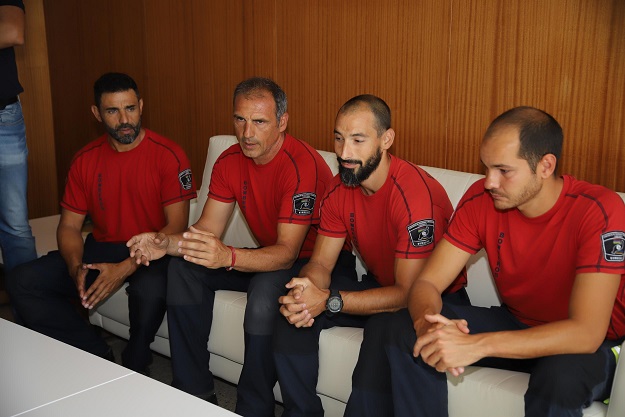 La presidenta del Cabildo, María Dolores Corujo, ha felicitado a los bomberos Roberto Mira, Santiago Montesdeoca, Jorge Santana y Domingo Crespo. Todos ellos integrantes del dispositivo que se envió para asistir en las labores de extinción en Gran Canaria y que, según Corujo, “deben estar en nuestra memoria por su valentía, solidaridad y buen hacer” en el trágico incendio de la isla vecina.