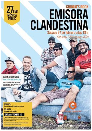 La primera de las actividades de Chinijo's Rock, explica este jueves en nota de prensa el Cabildo insular, será un concierto del grupo Emisora Clandestina, que tendrá lugar el próximo sábado 27 de febrero, a las 18.00 horas, en La Recova de Arrecife. Las entradas cuestan 1 euro y solo podrán adquirirse el mismo día del concierto en la taquilla que se habilite ese día en La Recova, desde una hora del comienzo de la actuación, es decir, desde las 18.00 horas.