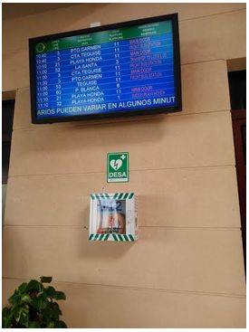 El Cabildo de Lanzarote, a través del Área de Transportes que dirige la consejera Patricia Pérez, ha procedido a la instalación de desfibriladores semiautomáticos externos para uso público en la estación de guaguas y en el intercambiador de guaguas de Arrecife, en cumplimiento con el Decreto 157/2015 del Gobierno de Canarias que obliga dotar con estos equipos a estaciones e intercambiadores de transporte terrestre en poblaciones de más de 50.000 habitantes.
