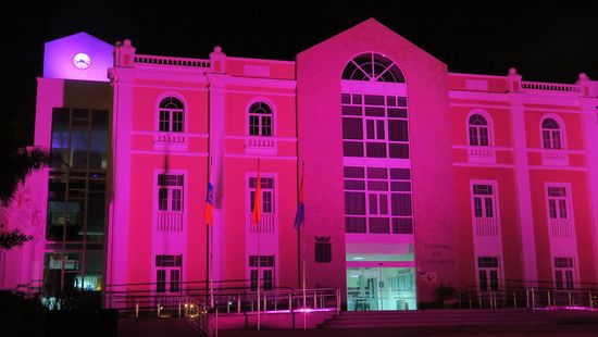 El Cabildo de Lanzarote y el Monumento al Campesino se iluminaron de color rosa este jueves, 19 de octubre, para sumarse a la iniciativa que promueve la Asociación Española Contra el Cáncer (AECC), el Día Mundial Contra el Cáncer de Mama. Esta propuesta, informa en nota de prensa posterior el Cabildo, se coordina a través de las áreas de Presidencia y Bienestar Social que dirigen los consejeros Luis Arráez y Juan Manuel Sosa, respectivamente, y busca dar mayor visibilidad a esta enfermedad en las Islas.