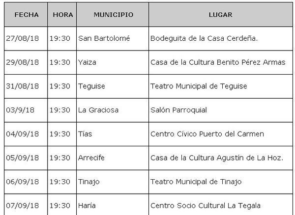 Las fechas previstas y las localizaciones de las charlas son las siguientes: