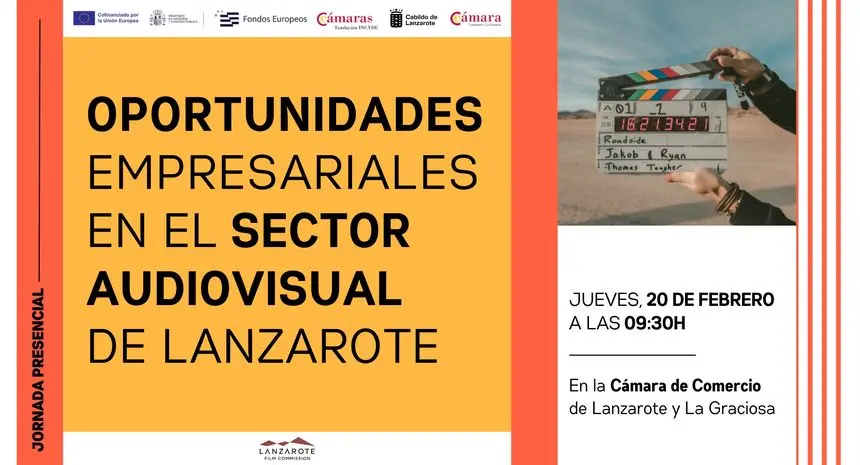La Cámara de Comercio de Lanzarote y La Graciosa celebrará la jornada “Oportunidades empresariales en el sector audiovisual de Lanzarote”, un encuentro diseñado para analizar el impacto y las oportunidades que ofrece la industria audiovisual en la isla. El evento tendrá lugar el jueves 20 de febrero a las 9:30 horas en las instalaciones de
