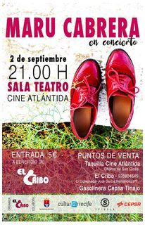 "Desde El Cribo queremos hacerle partícipe del concierto a beneficio de nuestra entidad de la cantante conejera Maru Cabrera, el próximo 2 de septiembre a las 21:00 horas en la Sala Teatro del Cine Atlántida", informan desde El Cribo. "No te lo pierdas".