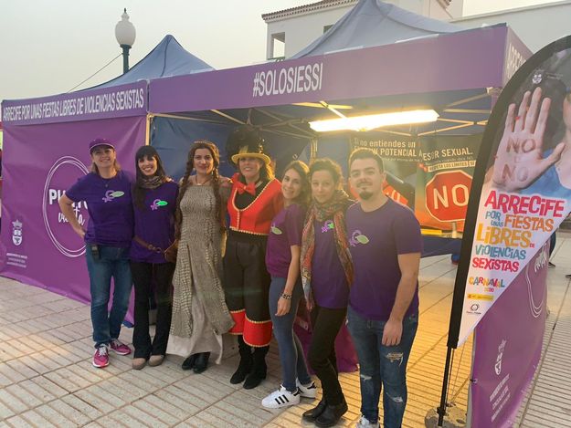 El Carnaval de Arrecife, en la capital de Lanzarote, ha contado por primera vez en su historia con un punto violeta de atención, información y asesoramiento en materia de violencia sexista. La iniciativa ha sido impulsada por el Ayuntamiento de Arrecife, a través de la Concejalía de Servicios Sociales, Igualdad e Inmigración, bajo la dirección de la concejalde Bienestar Social e Igualdad y portavoz del PP, María Jesús Tovar.