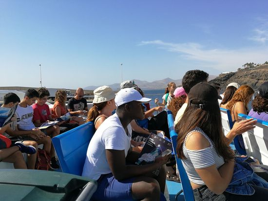 Un grupo de alrededor de 100 alumnos y profesores de Bachillerato, procedentes de diversos centros de enseñanza de la Isla, participaron el pasado sábado 11 de noviembre en una actividad de avistamiento de cetáceos, organizada por el Cabildo de Lanzarote, a través de la Oficina de la Reserva de la Biosfera.