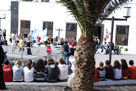 Aproximadamente 600 alumnos de Teguise participaron en la celebración del Día Escolar por la Paz y la No Violencia que tuvo lugar en la Plaza de San Miguel de la Villa de Teguise.