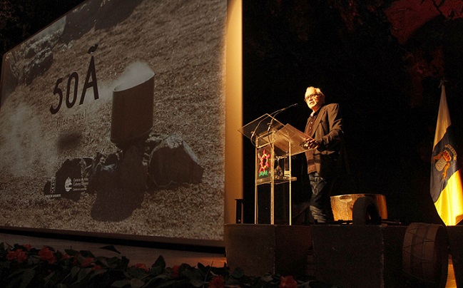 A continuación, tomó la palabra Pedro San Ginés. El presidente del Cabildo de Lanzarote, que pidió la licencia a quienes le han precedido en el cargo desde 1966 “para poner voz hoy a sus pensamientos”, confesó sentirse “inquieto y entusiasmado, responsabilizado pero orgulloso, feliz y emocionado” ante la celebración del “medio siglo transcurrido desde que un visionario se adentrara en las entrañas de esta isla para arrancar vida y color donde el resto de mortales veía únicamente desolación, negros y ocres. Una revolución” recordó, “iniciada en páramos y espacios degradados que alumbró una nueva conciencia colectiva en una sociedad hasta entonces deprimida”.