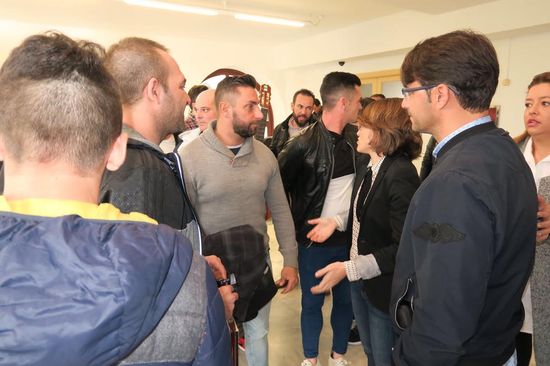 El concejal de Festejos, David Duarte, quiso sorprender a trabajadores y usuarios con la actuación ‘in situ’ de la chirigota ‘La Aguja de Oro’ que actuará en la Final del Concurso de Murgas este viernes a las 21.00 horas en el Recinto Ferial.