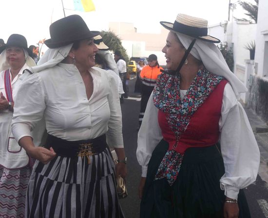 Miembros de la Corporación Municipal acudieron a la cita ataviados para la ocasión, encabezada por la alcaldesa, María Dolores Corujo, disfrutando de la velada junto a la vecindad, llevando también su ofrenda ante el Santo Patrón.