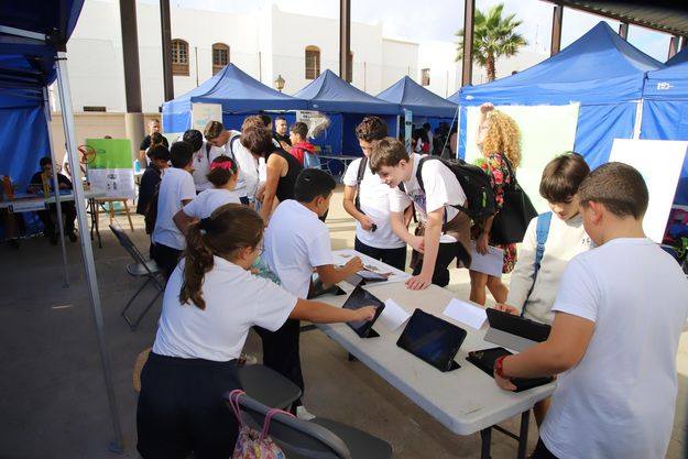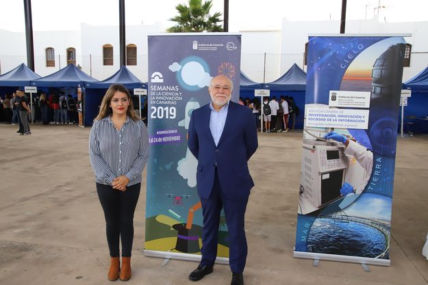 La consejera de Educación del Cabildo de Lanzarote, Paula Corujo, visitó cada uno de los stands del centro educativo junto al director de ACIISI, José Moya. Las actividades programadas en el Centro Integrado de Formación Profesional (CIFP) Zonzamas de Arrecife están dirigidas a escolares de primero y segundo de la ESO de Lanzarote en visitas concertadas previa inscripción, además de público en general, en horario de 9 a 13.30 horas.