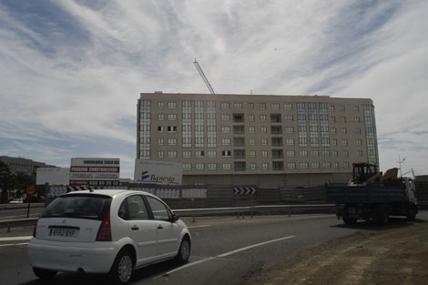 El coche está frente a un vistoso edificio justo al principio de la Avenida, el segundo más alto de toda la ciudad, superado sólo por el Arrecife Gran Hotel, que le hace sombra apenas unos metros más adelante. Un edificio en apariencia terminado, aunque las vallas que lo rodean no dejan prestarse al engaño. Aquí no vive nadie. El solitario vecino de la pancarta tenía que ser uno de los felices vecinos a los que la inmobiliaria prometió que la entrega de las llaves sería a principio de 2007. Un año y medio después, sólo puede confiar en que Siglo XXI cumpla su última promesa: las viviendas empezarán a ser entregadas a partir del próximo mes de junio.